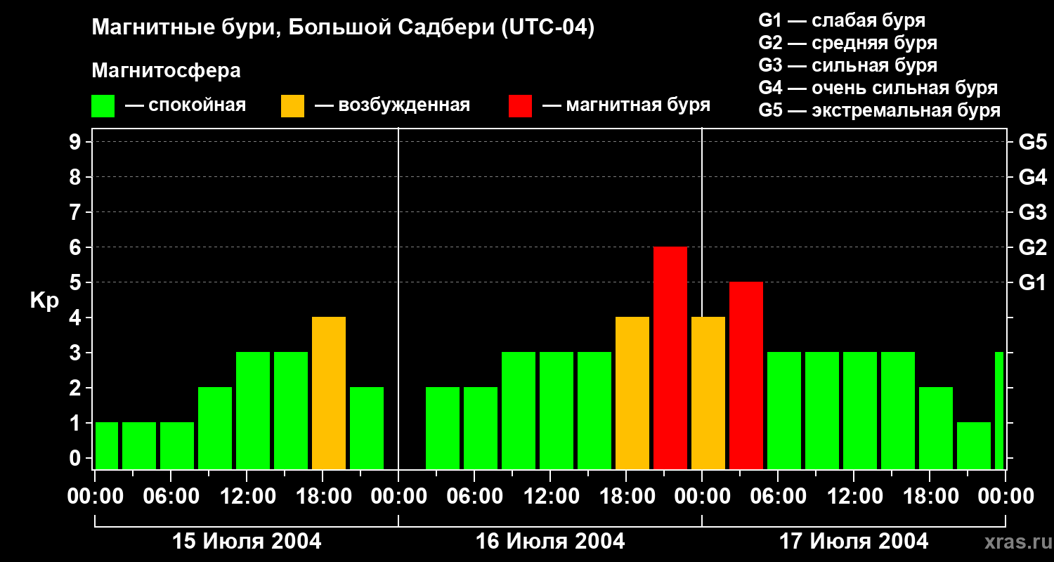 Магнитные бури Большом Садбери 17 июля 2004 года
