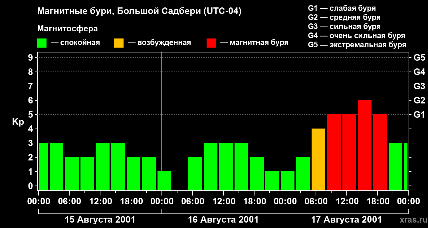 Магнитные бури Большом Садбери 17 августа 2001 года