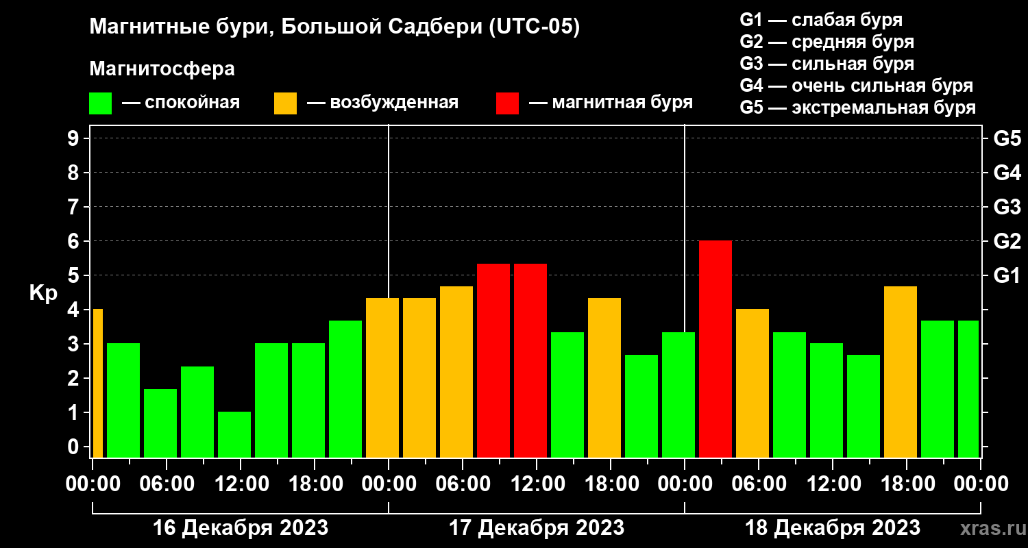 Магнитные бури Большом Садбери в декабре 2023 года