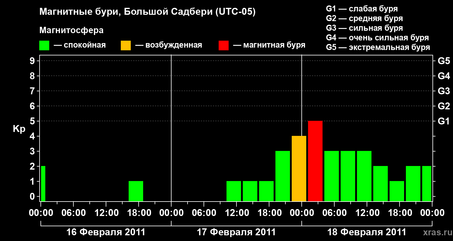 Магнитные бури Большом Садбери 18 февраля 2011 года