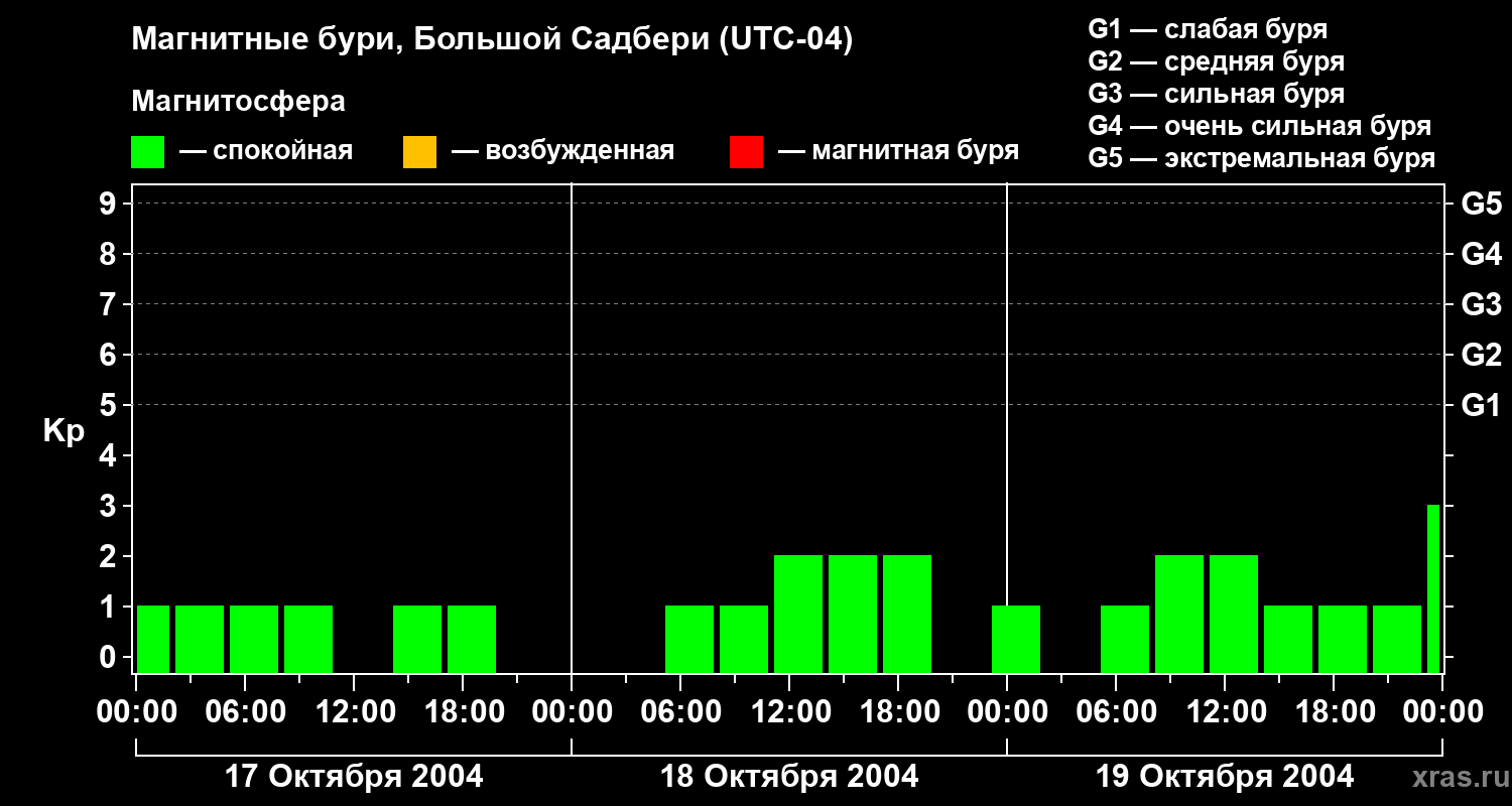 Магнитные бури Большом Садбери 19 октября 2004 года