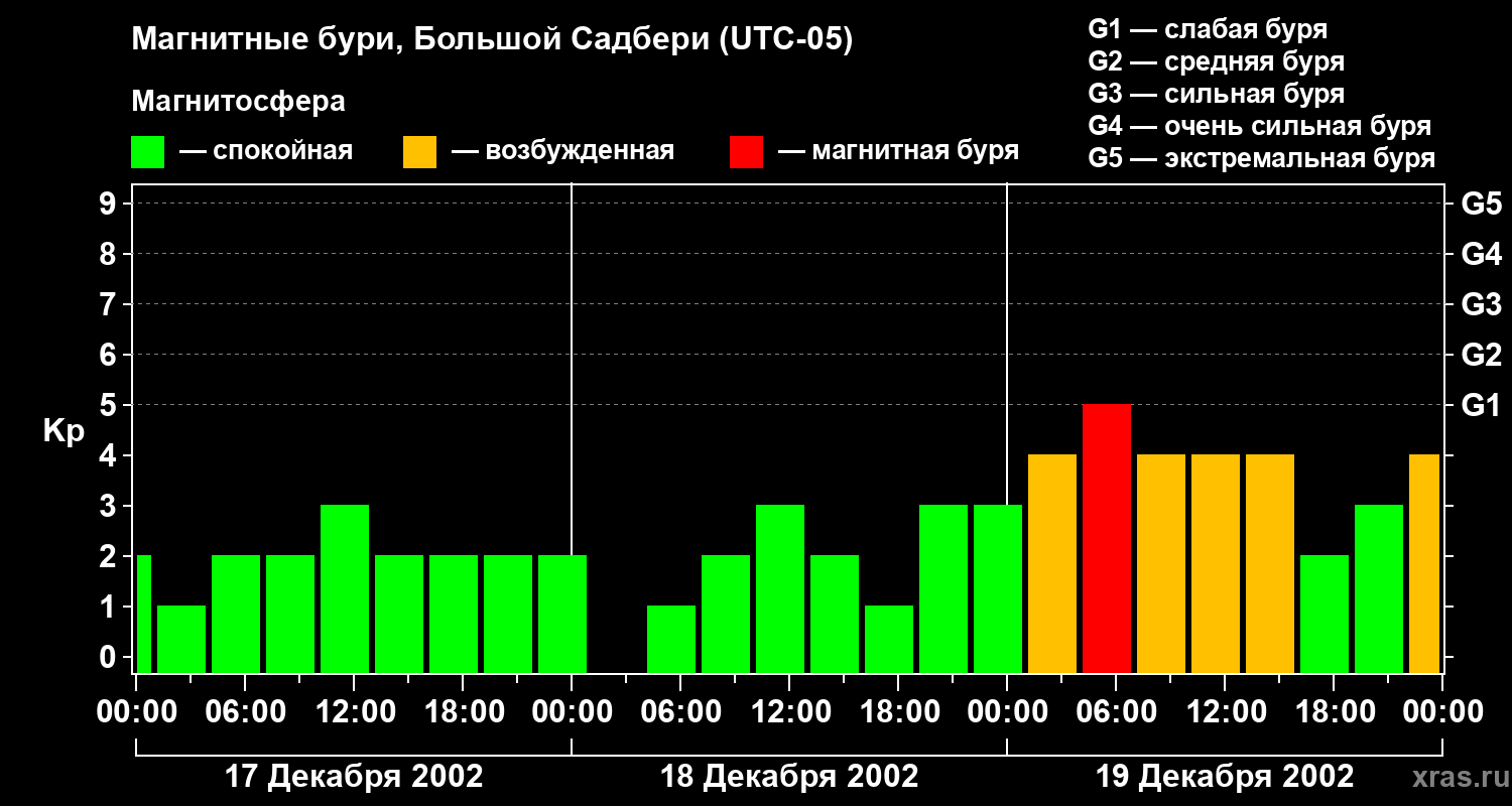 Магнитные бури Большом Садбери 19 декабря 2002 года