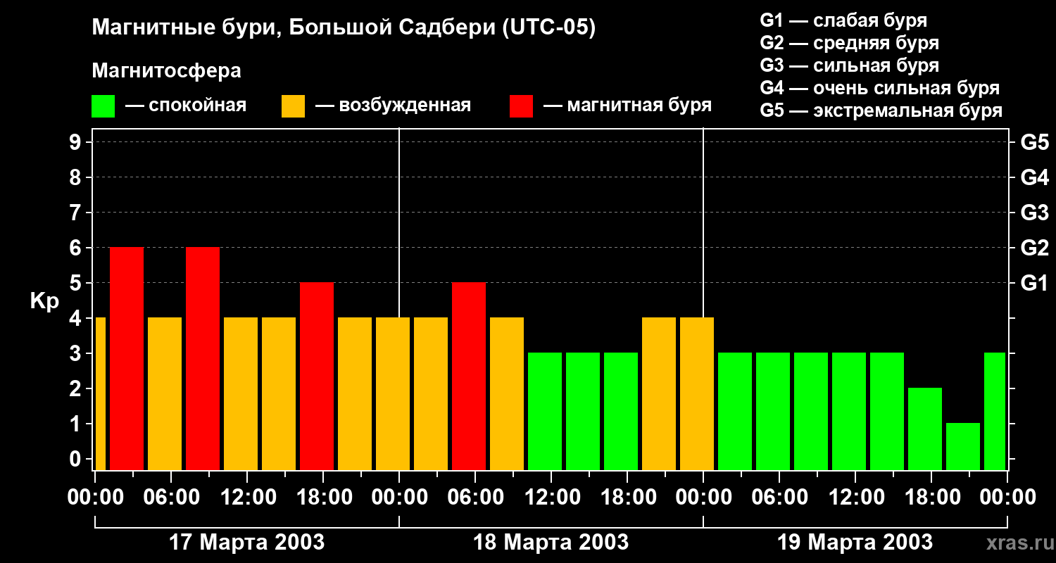 Магнитные бури Большом Садбери — 19 марта 2003 года