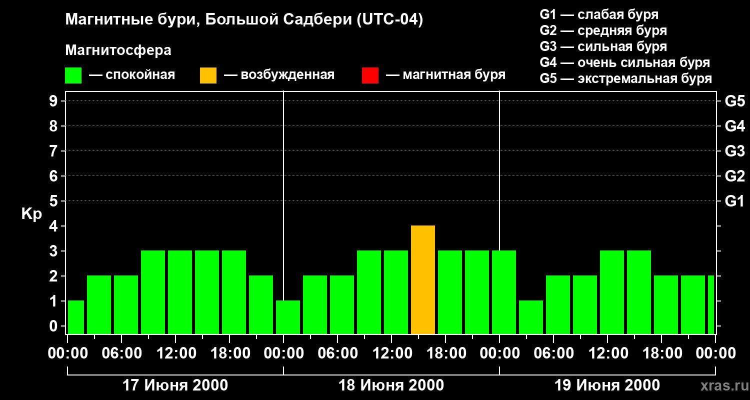 Магнитные бури Большом Садбери 19 июня 2000 года