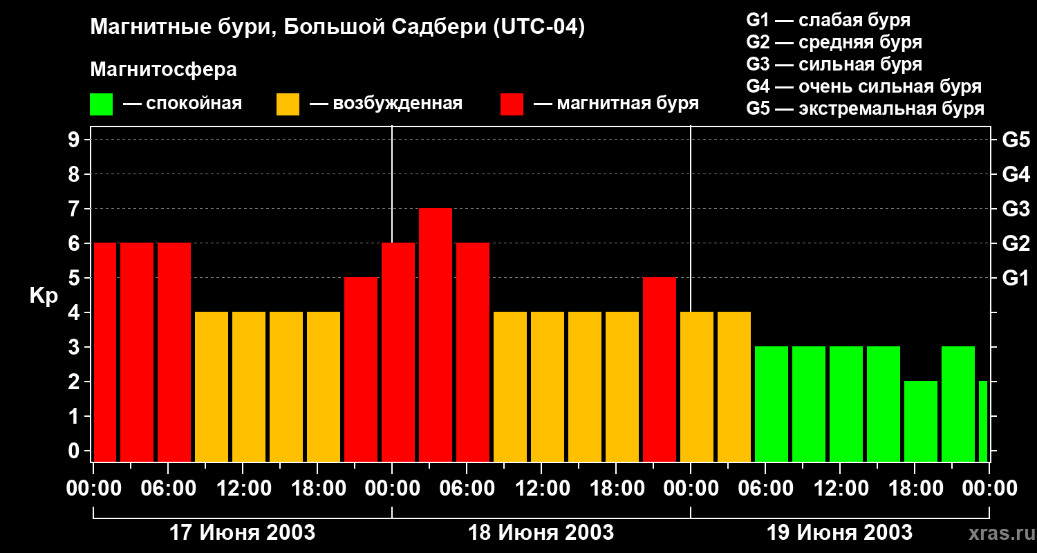 Магнитные бури Большом Садбери 19 июня 2003 года
