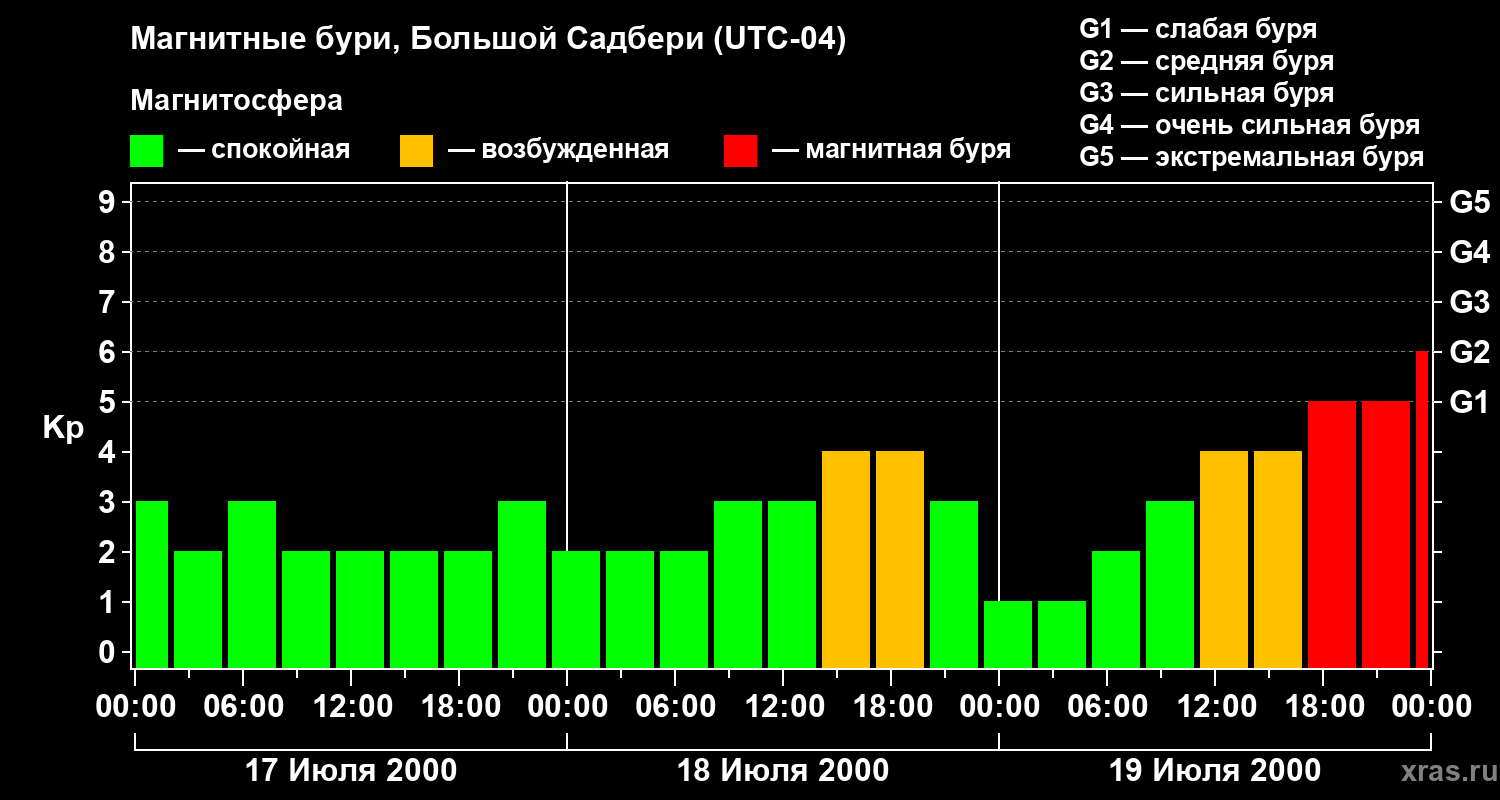 Магнитные бури Большом Садбери 19 июля 2000 года