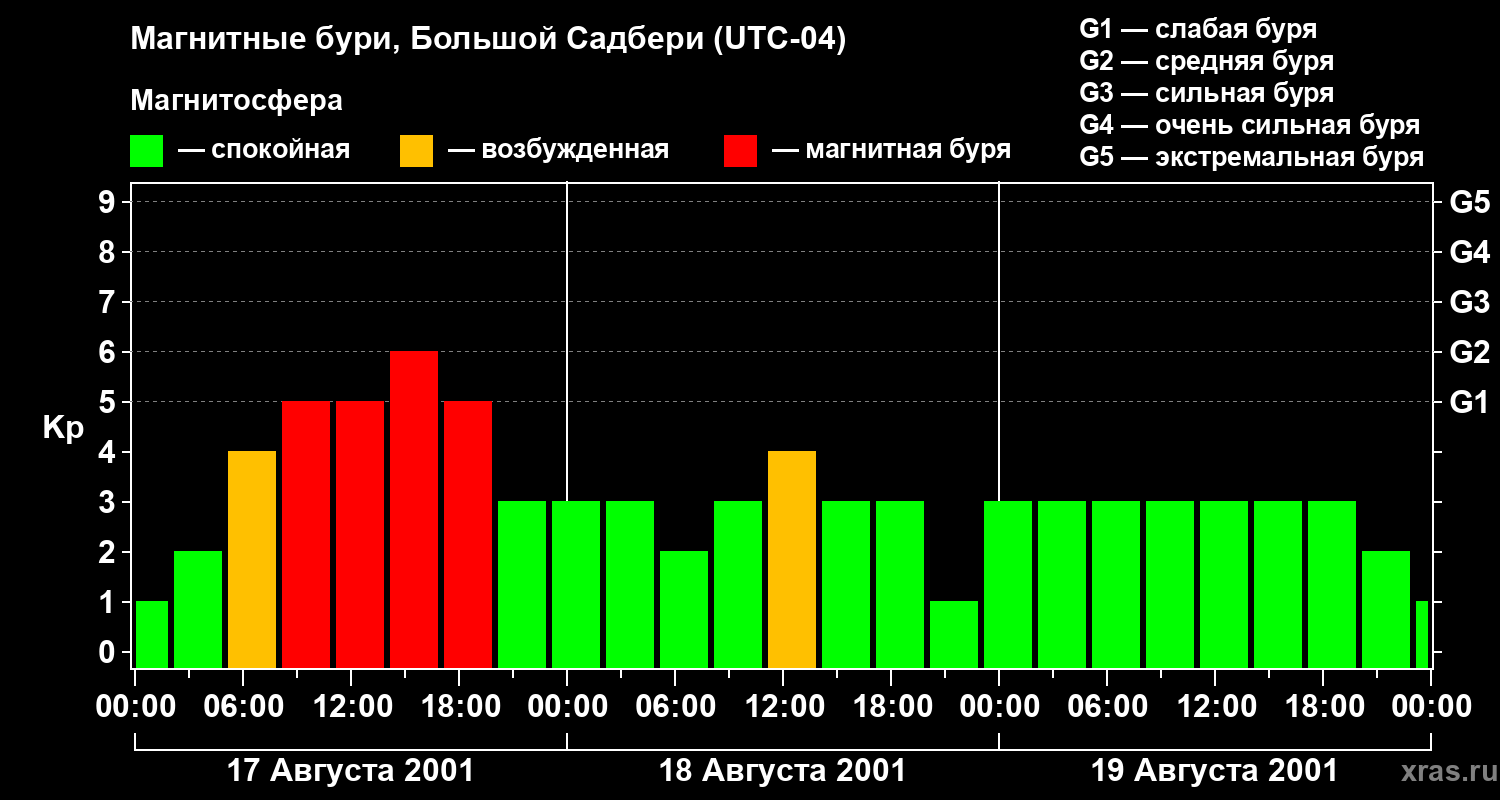 Магнитные бури Большом Садбери 19 августа 2001 года