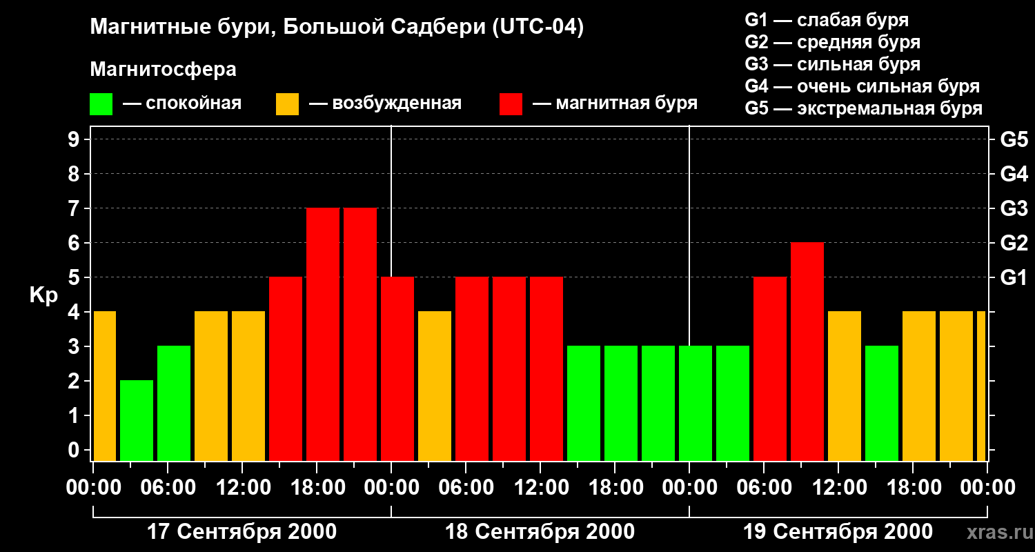 Магнитные бури Большом Садбери в сентябре 2000 года