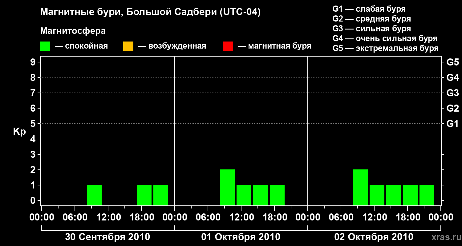 Магнитные бури Большом Садбери 2 октября 2010 года