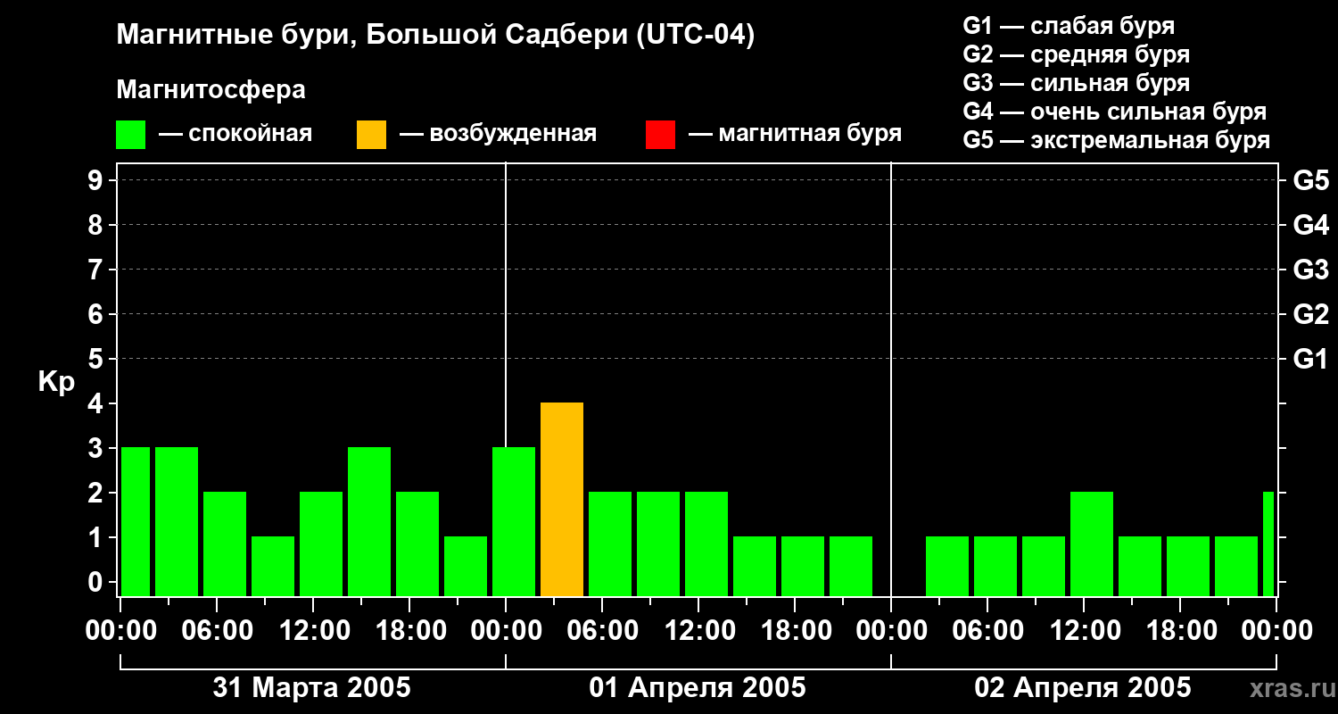 Магнитные бури Большом Садбери 2 апреля 2005 года