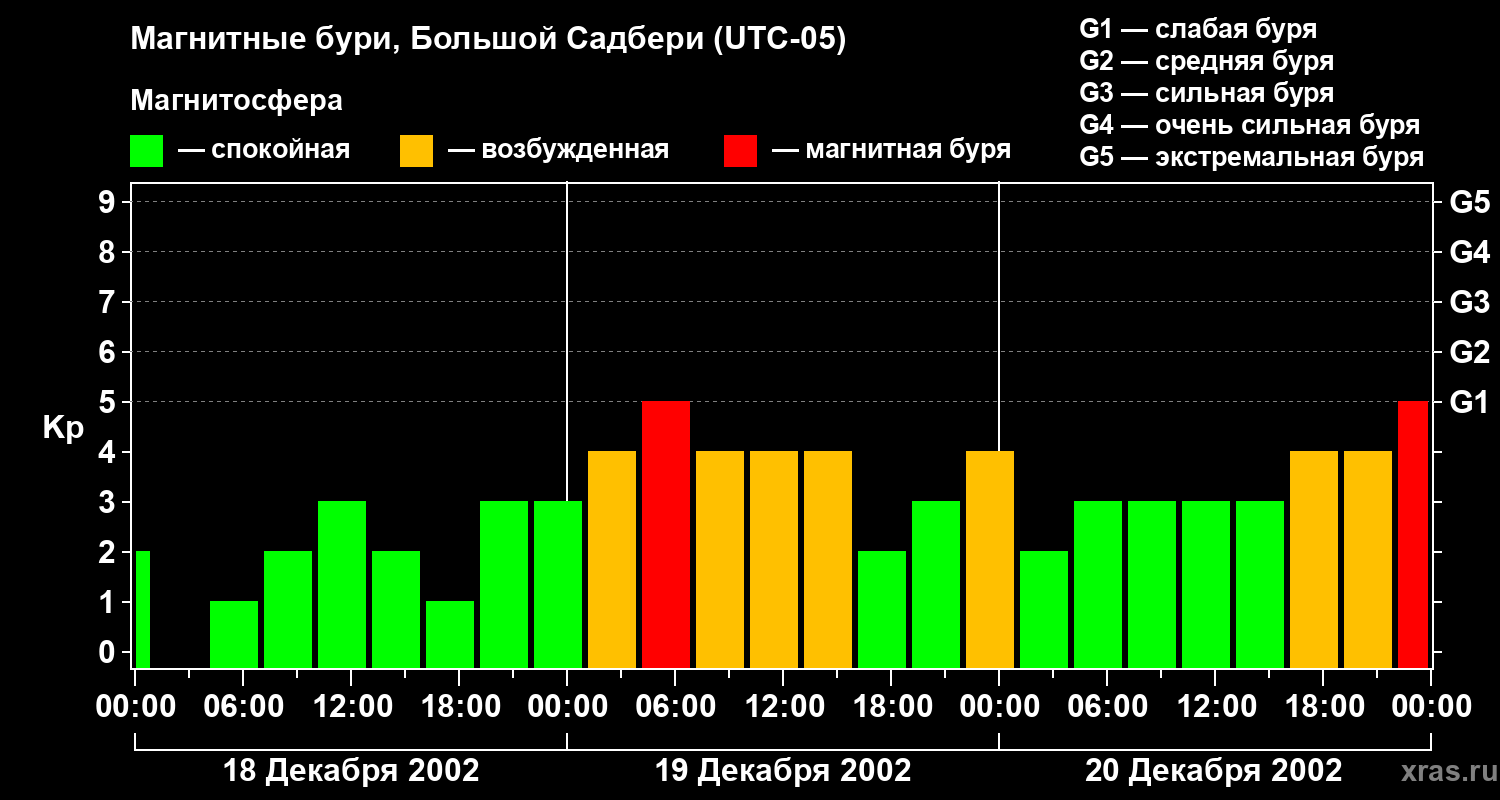 Магнитные бури Большом Садбери 20 декабря 2002 года