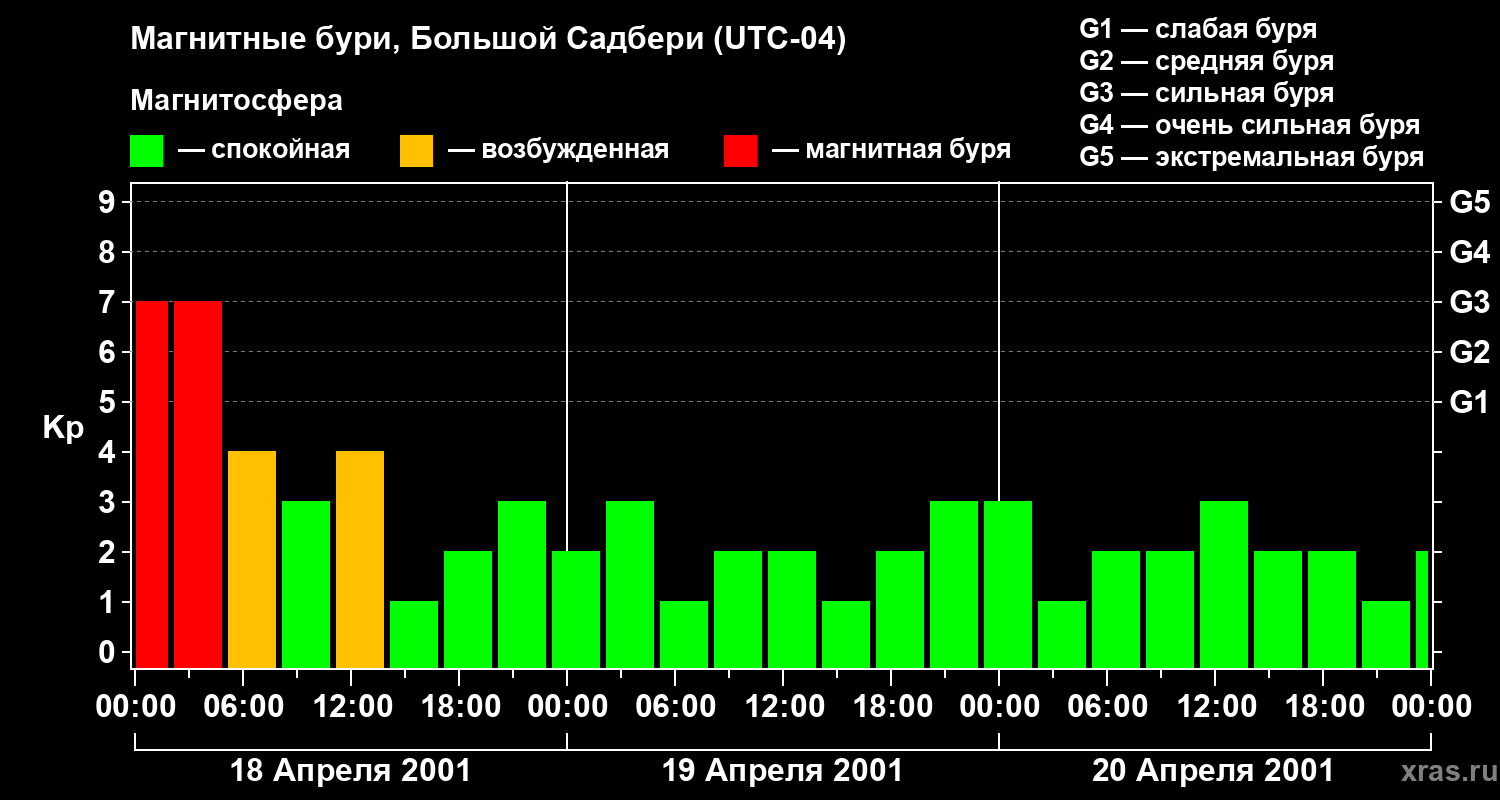 Магнитные бури Большом Садбери — 20 апреля 2001 года