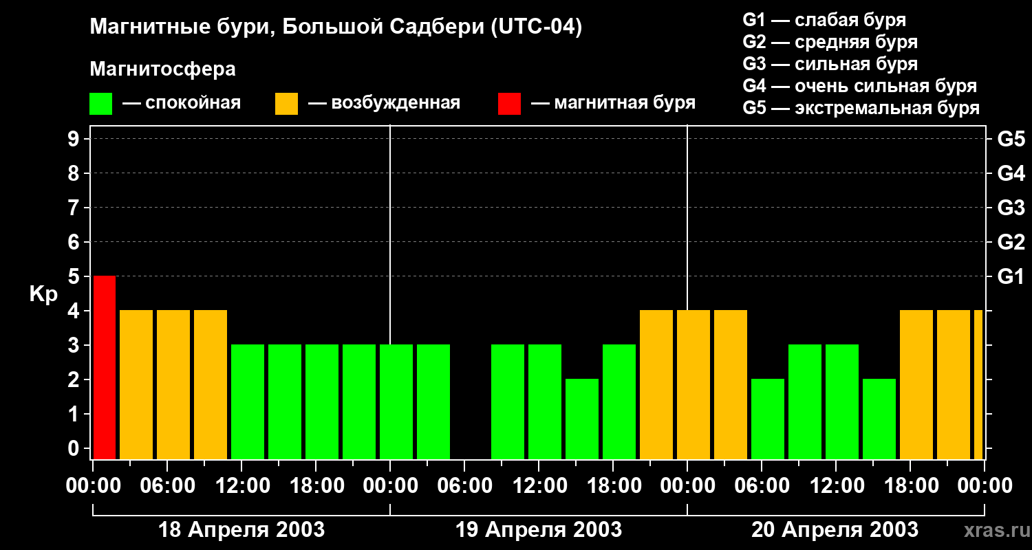 Магнитные бури Большом Садбери — 20 апреля 2003 года