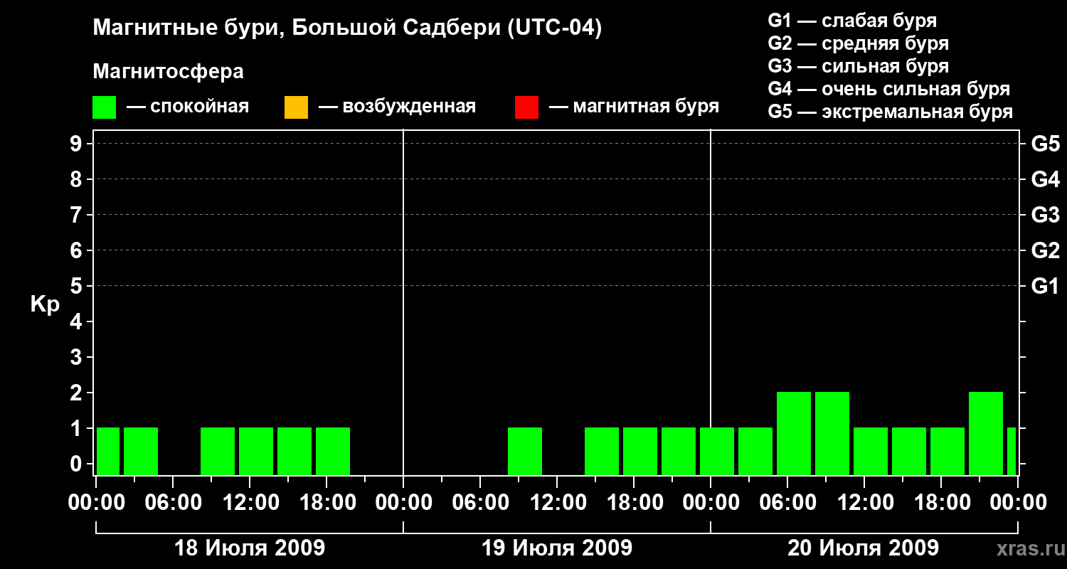 Магнитные бури Большом Садбери 20 июля 2009 года