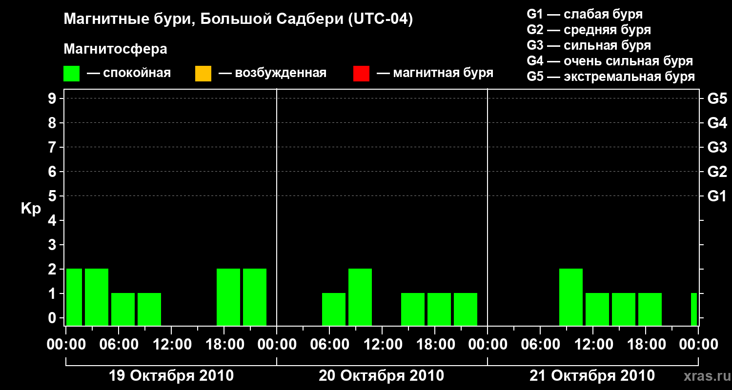 Магнитные бури Большом Садбери 21 октября 2010 года