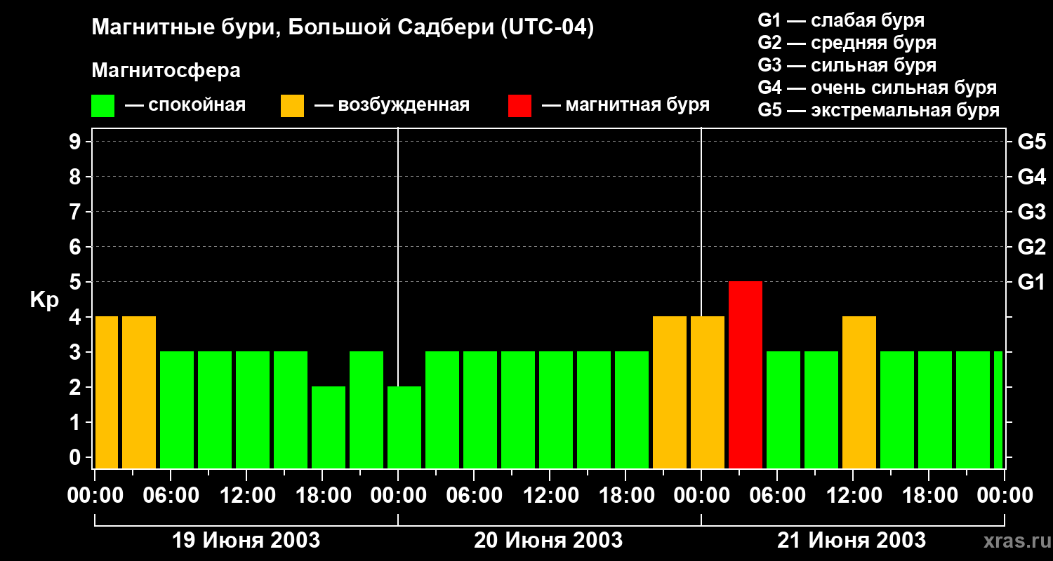 Магнитные бури Большом Садбери 21 июня 2003 года