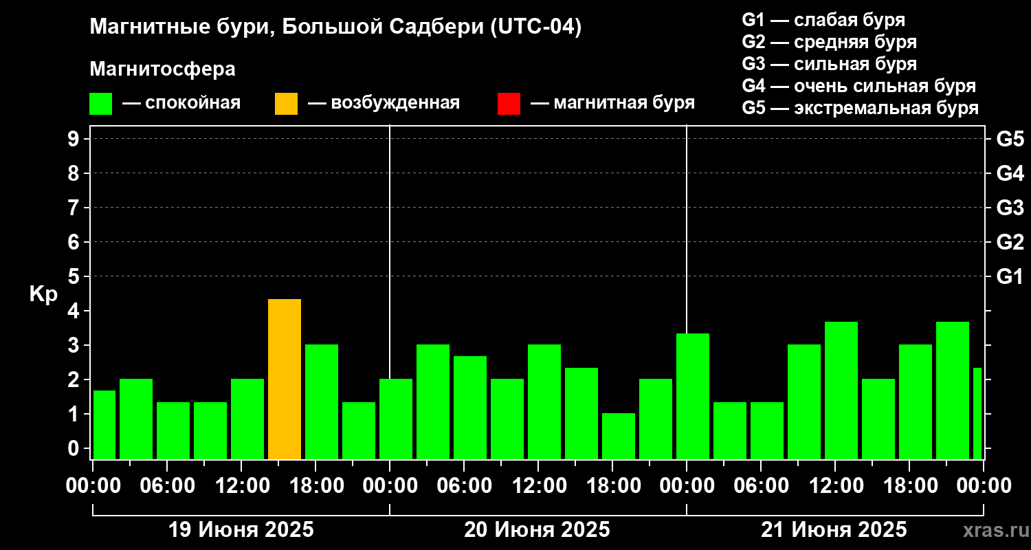 Магнитные бури Большом Садбери 21 июня 2025 года