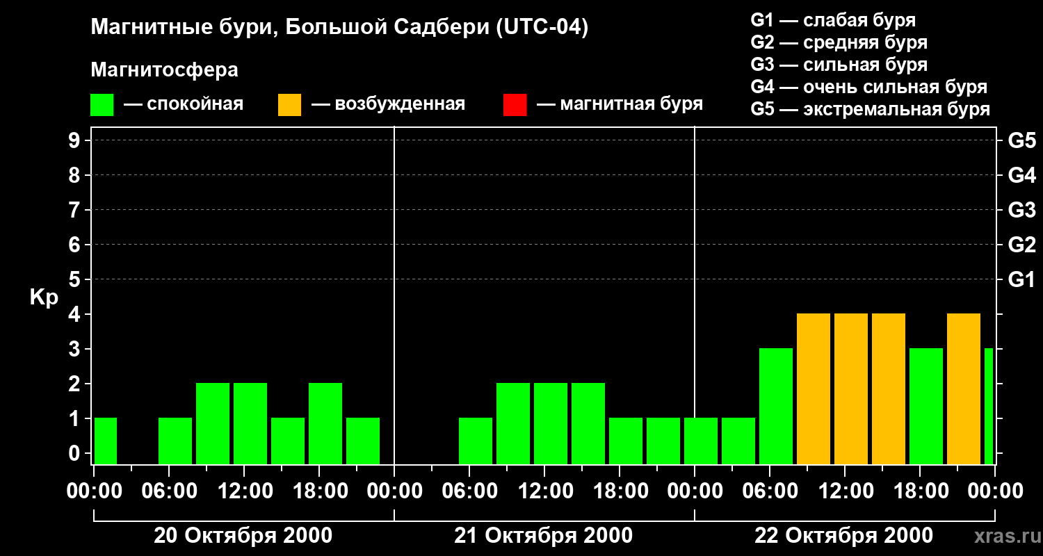 Магнитные бури Большом Садбери 22 октября 2000 года