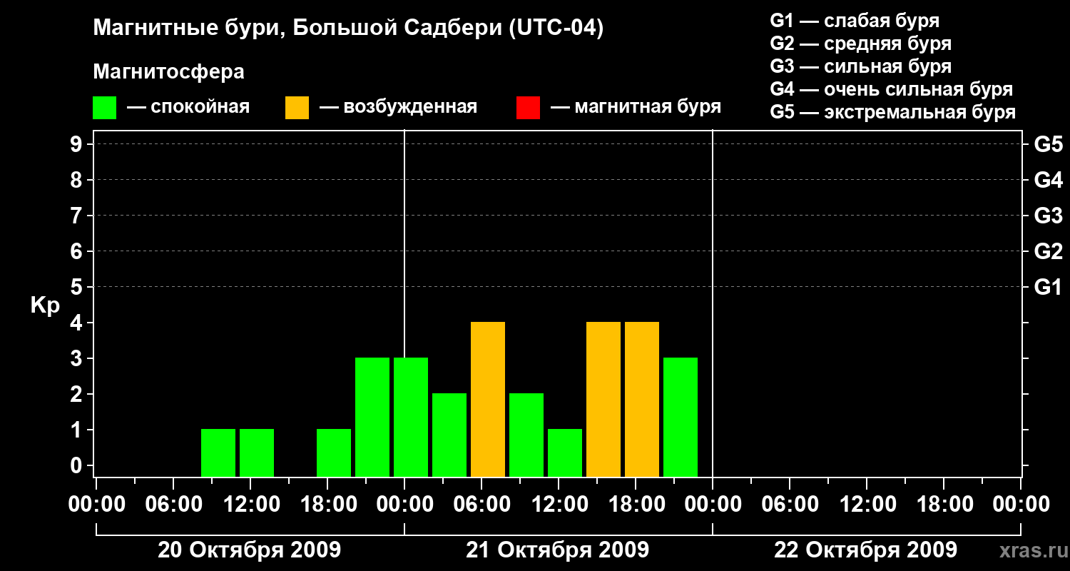 Магнитные бури Большом Садбери 22 октября 2009 года