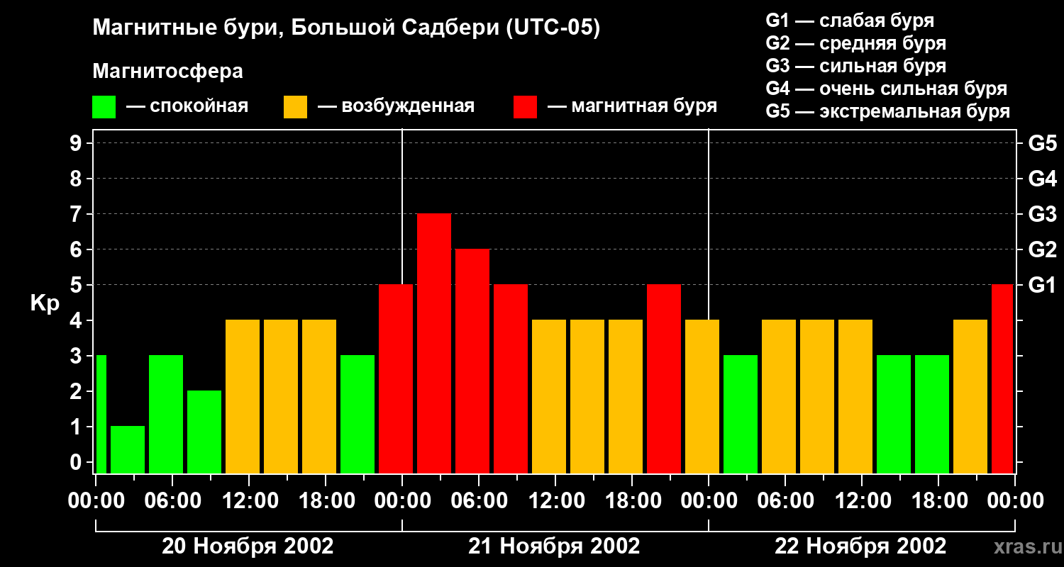 Магнитные бури Большом Садбери — 22 ноября 2002 года