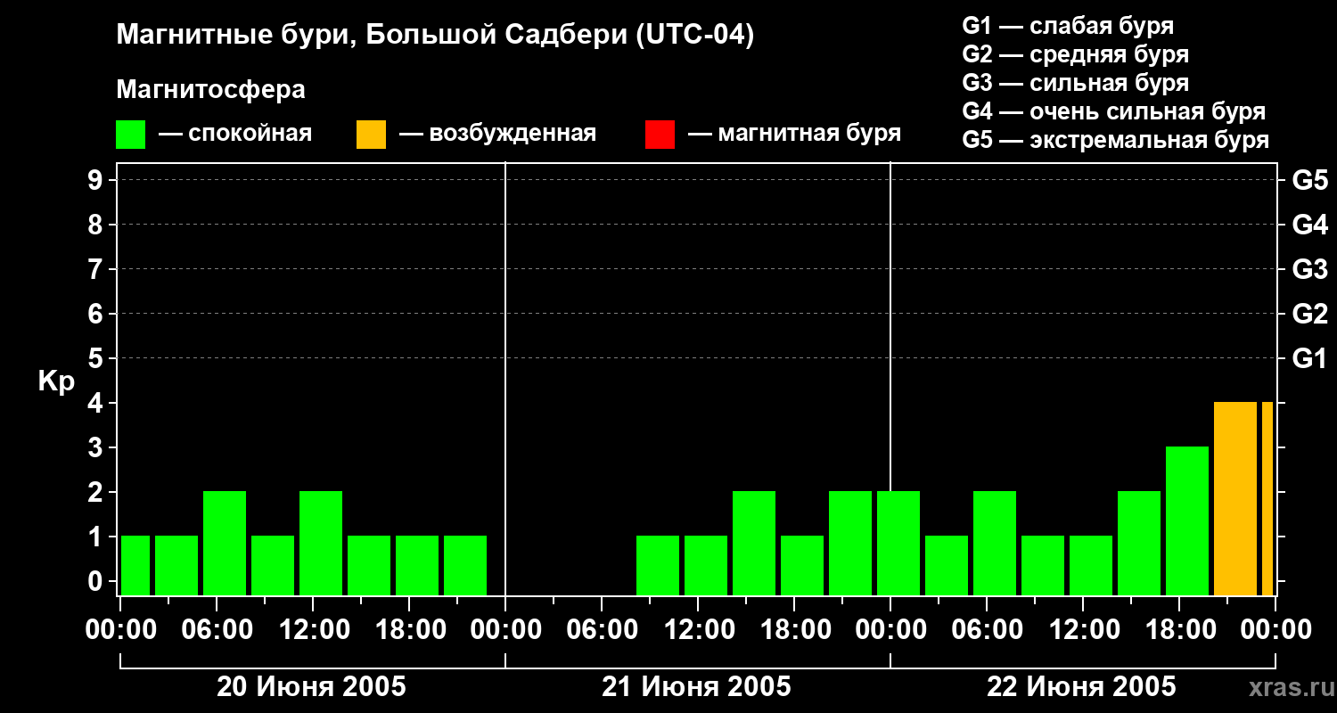 Магнитные бури Большом Садбери — 22 июня 2005 года
