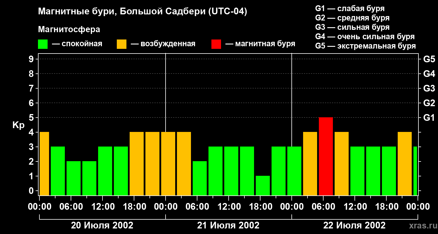 Магнитные бури Большом Садбери 22 июля 2002 года