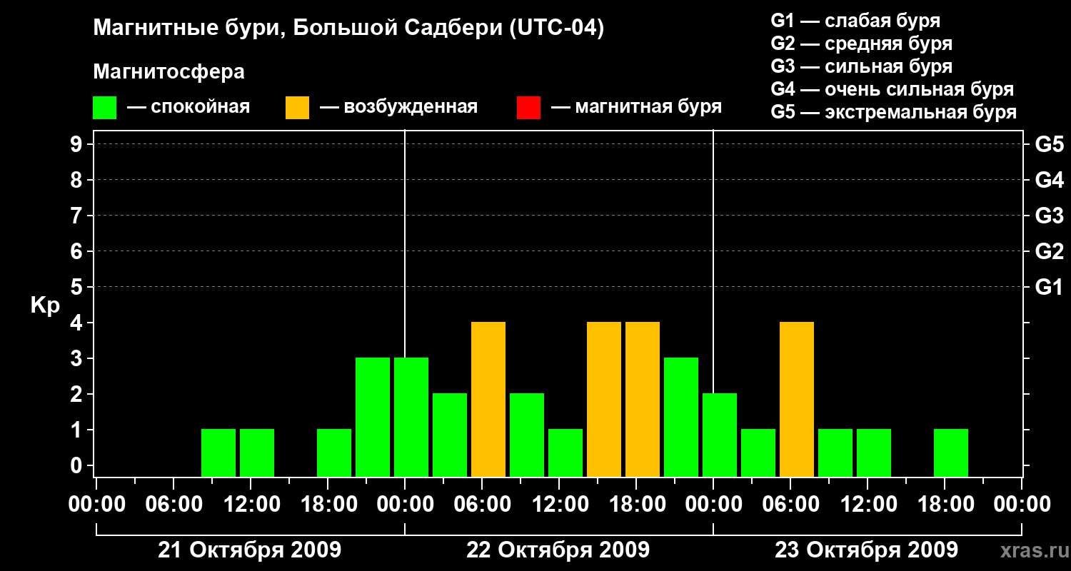 Магнитные бури Большом Садбери 23 октября 2009 года
