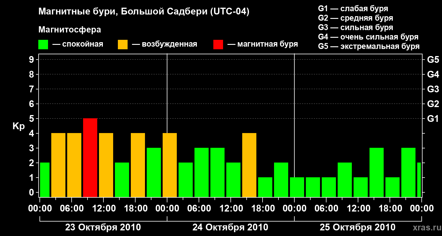 Магнитные бури Большом Садбери 25 октября 2010 года