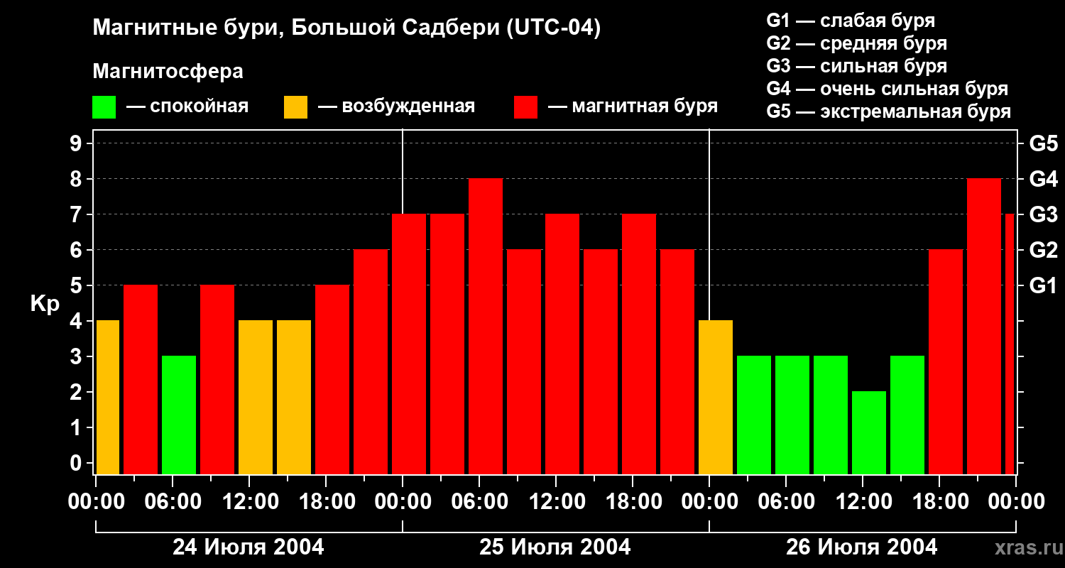 Магнитные бури Большом Садбери 26 июля 2004 года