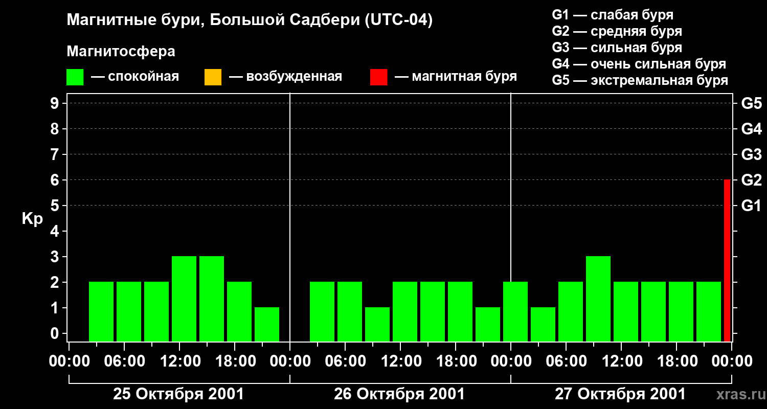 Магнитные бури Большом Садбери 27 октября 2001 года