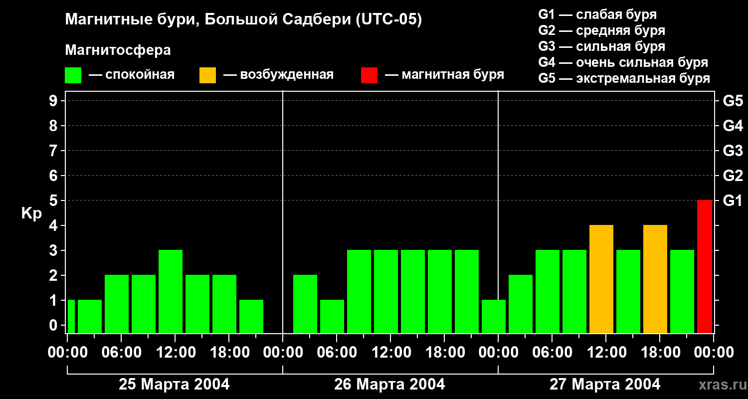 Магнитные бури Большом Садбери — 27 марта 2004 года