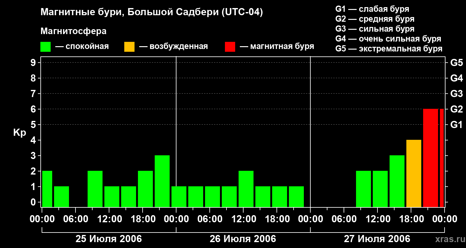 Магнитные бури Большом Садбери 27 июля 2006 года