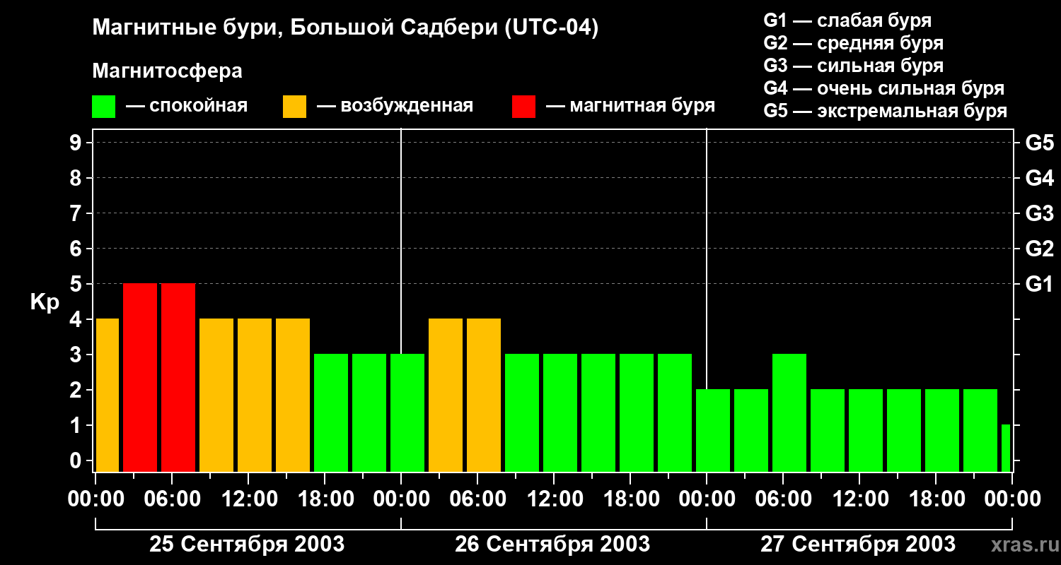 Магнитные бури Большом Садбери — 27 сентября 2003 года