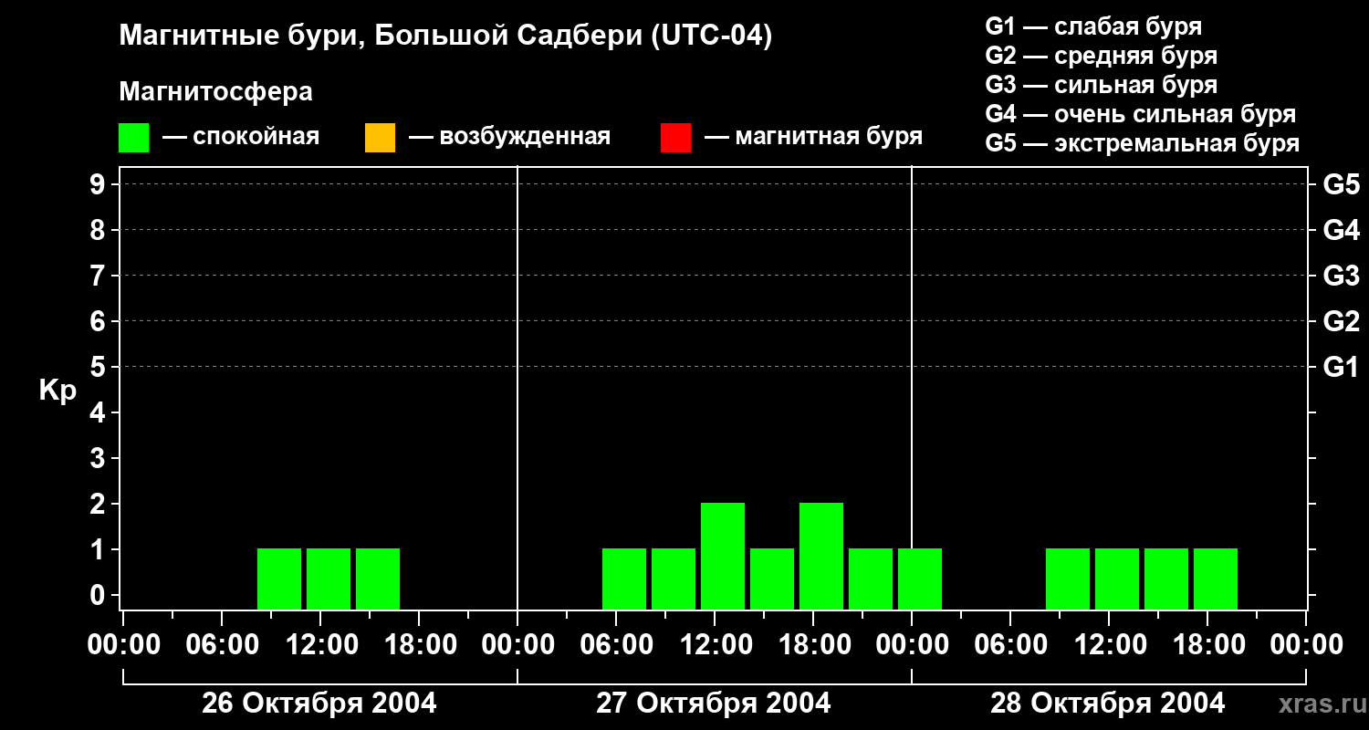 Магнитные бури Большом Садбери 28 октября 2004 года