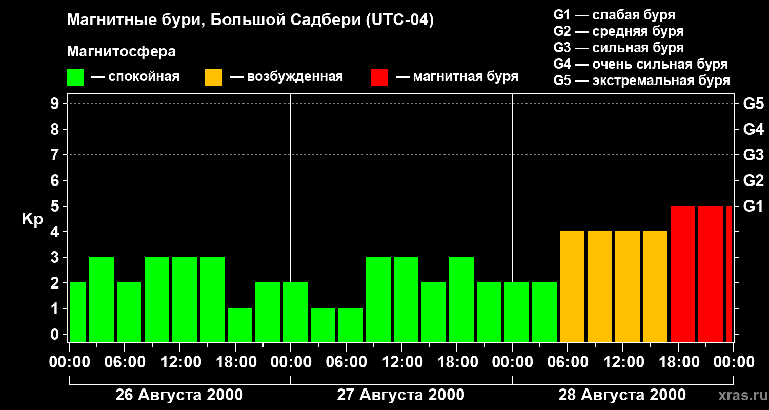 Магнитные бури Большом Садбери 28 августа 2000 года