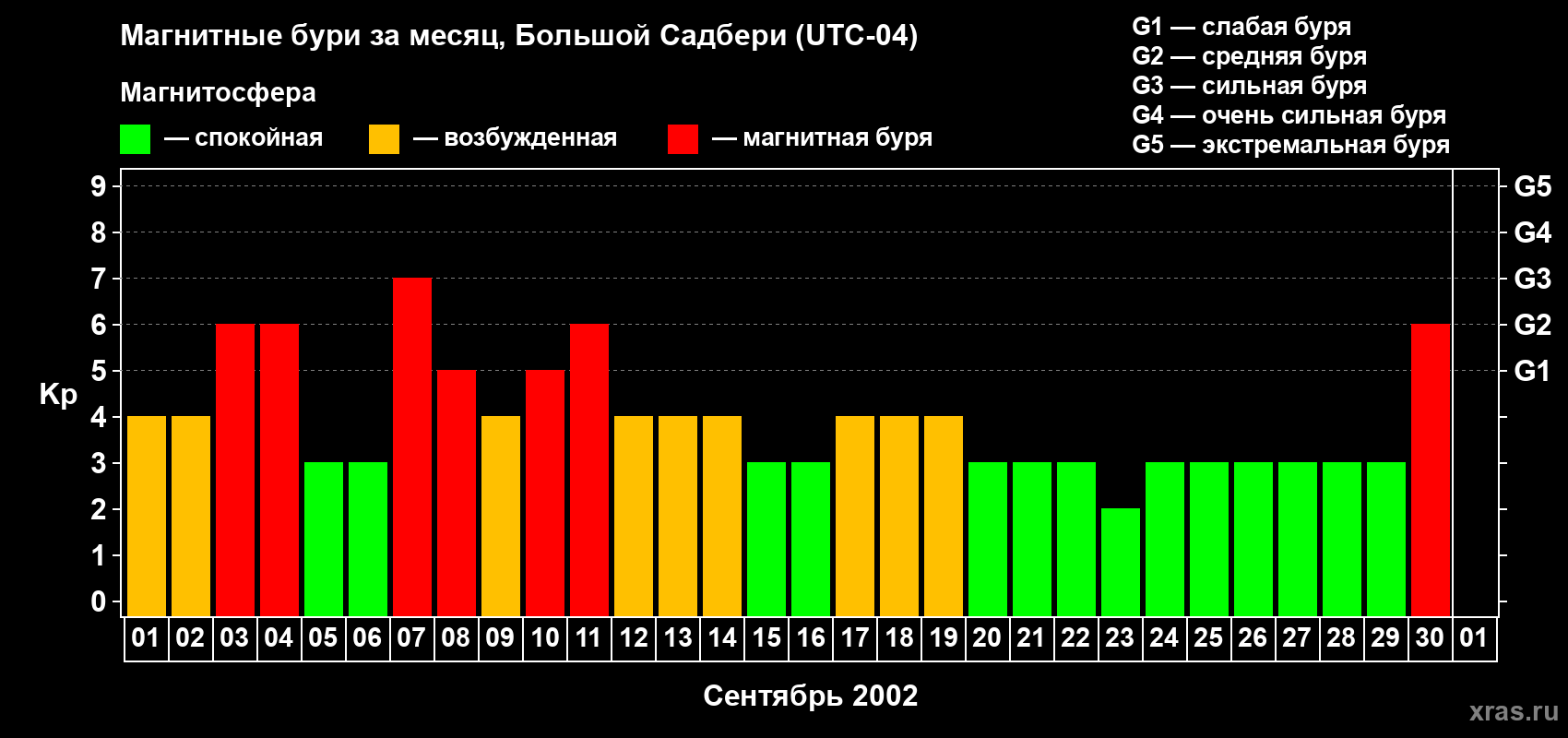 Магнитные бури Большом Садбери в сентябре 2002 года