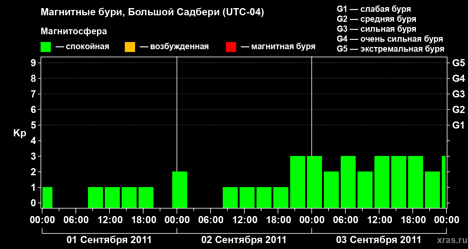 Магнитные бури Большом Садбери 3 сентября 2011 года