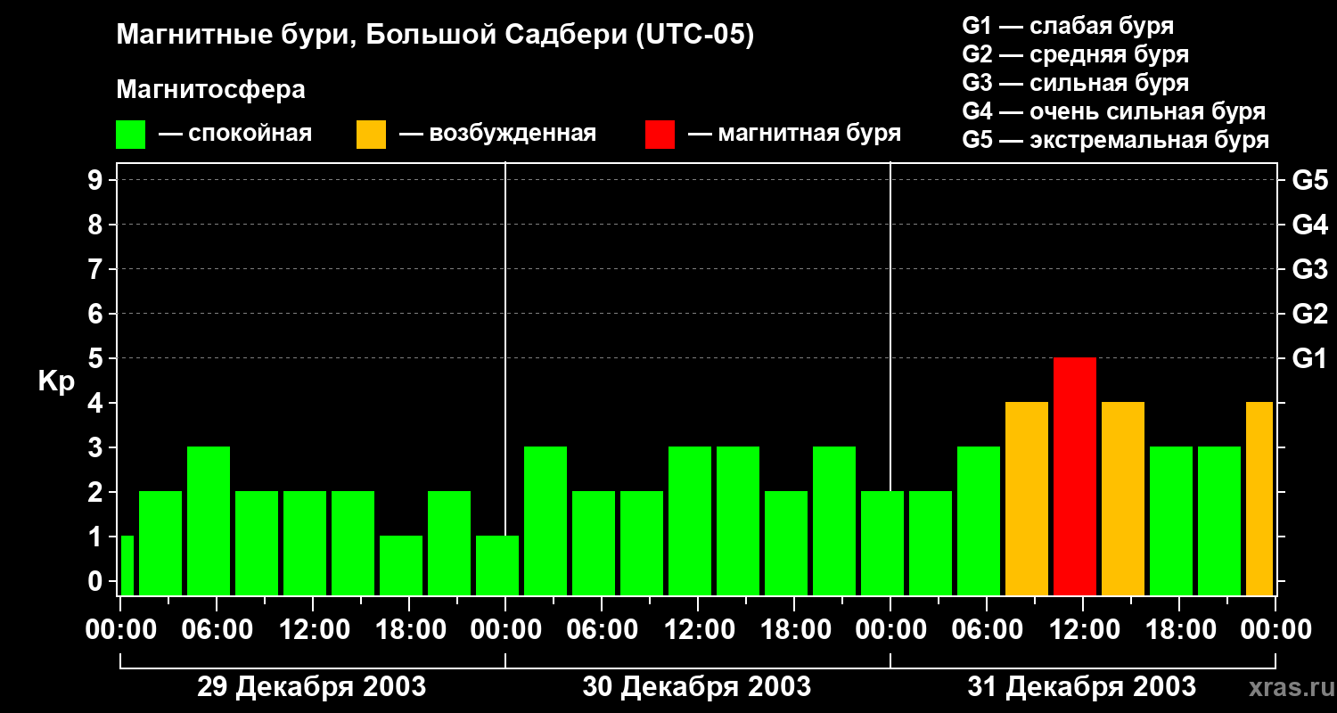 Магнитные бури Большом Садбери — 31 декабря 2003 года