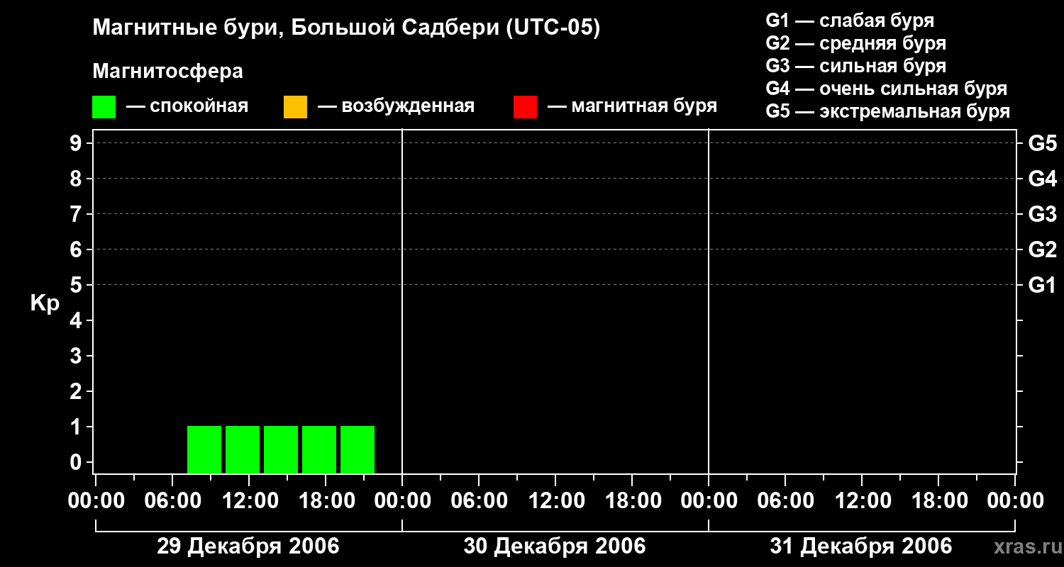 Изменения геомагнитного индекса Kp с 29 по 31 декабря 2006 года для средних широт