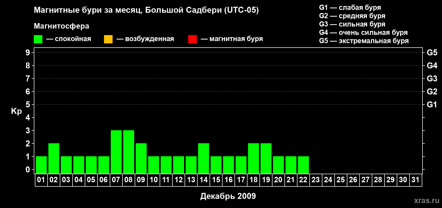 Магнитные бури Большом Садбери — 31 декабря 2009 года