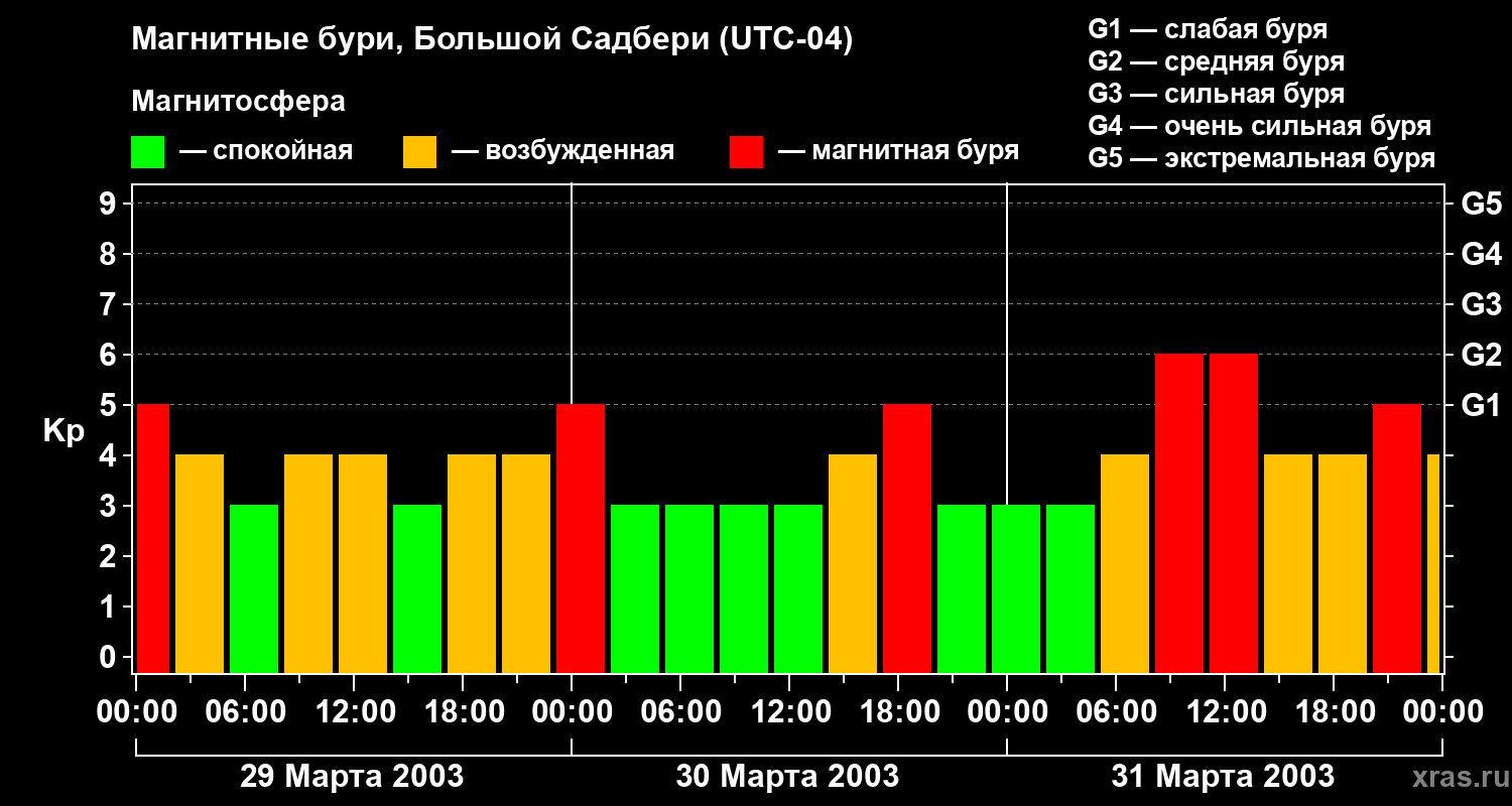 Магнитные бури Большом Садбери — 31 марта 2003 года
