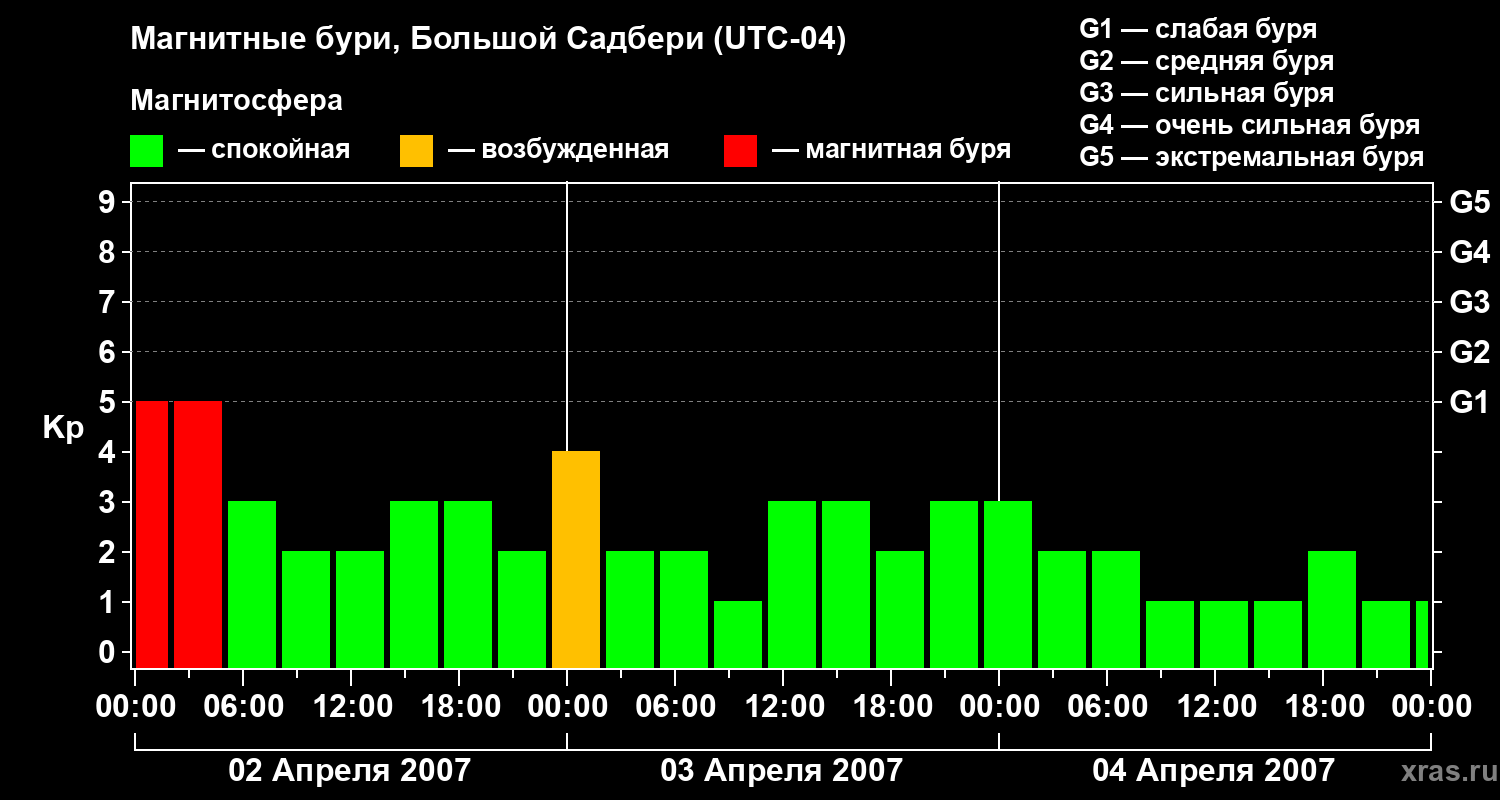 Магнитные бури Большом Садбери — 4 апреля 2007 года