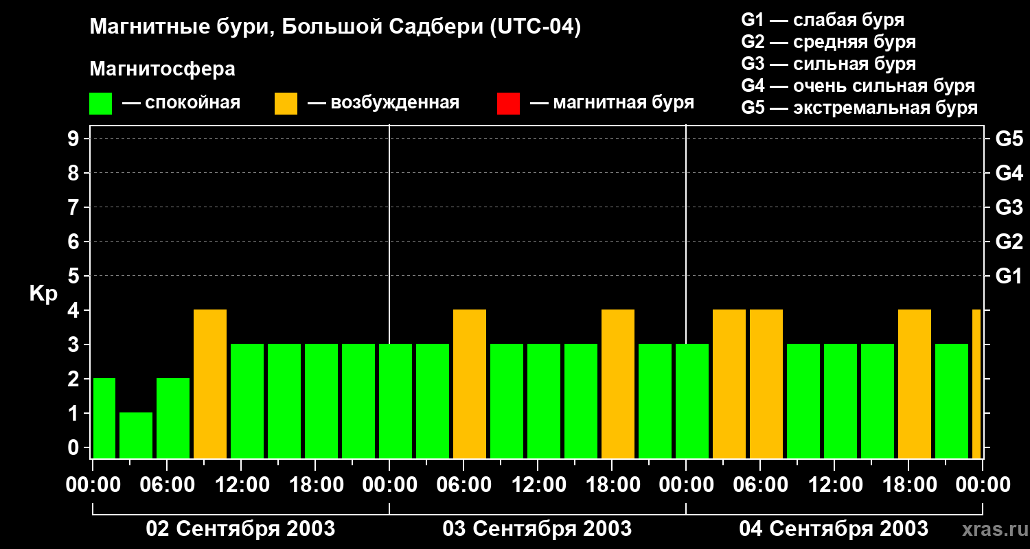 Магнитные бури Большом Садбери 4 сентября 2003 года
