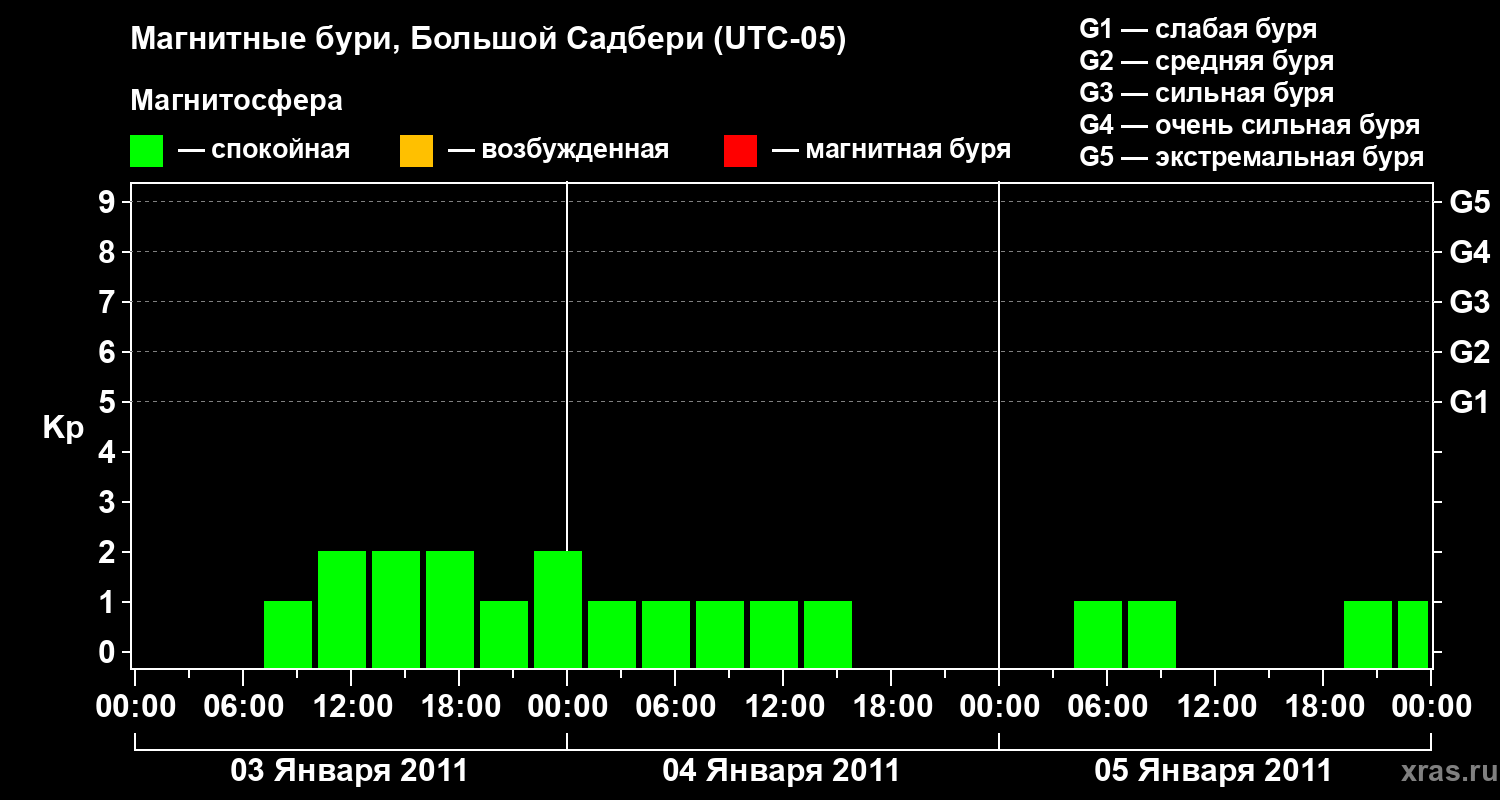 Изменения геомагнитного индекса Kp с 3 по 5 января 2011 года для средних широт