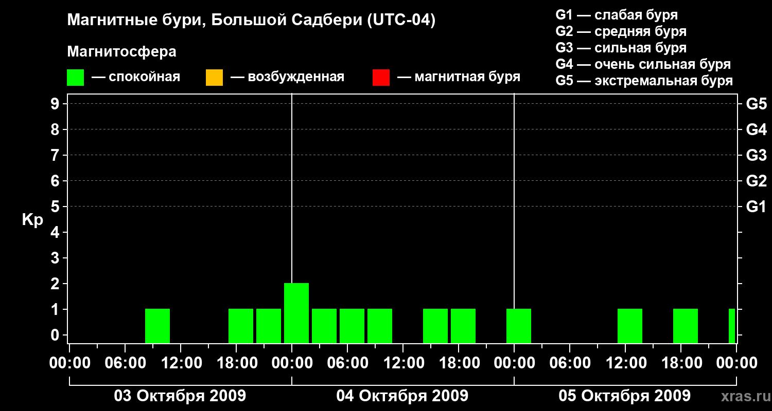 Магнитные бури Большом Садбери 5 октября 2009 года
