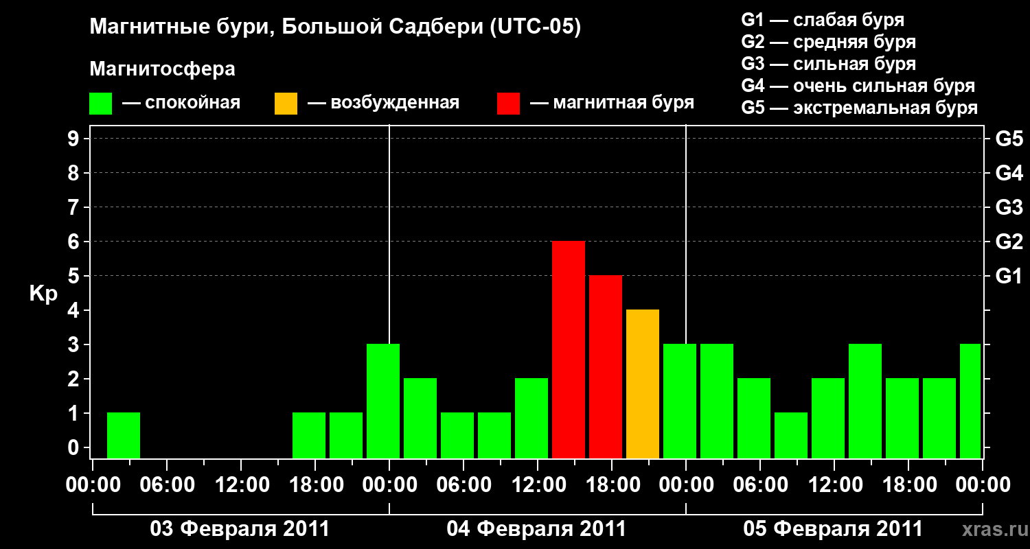 Магнитные бури Большом Садбери 5 февраля 2011 года
