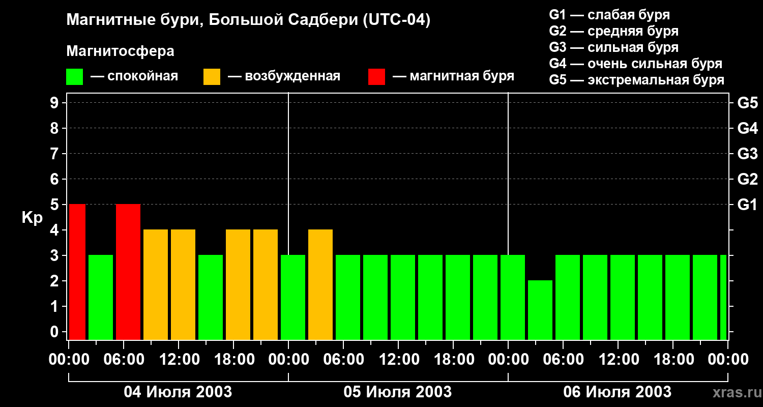 Магнитные бури Большом Садбери 6 июля 2003 года