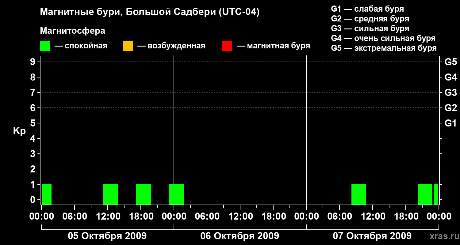 Магнитные бури Большом Садбери 7 октября 2009 года