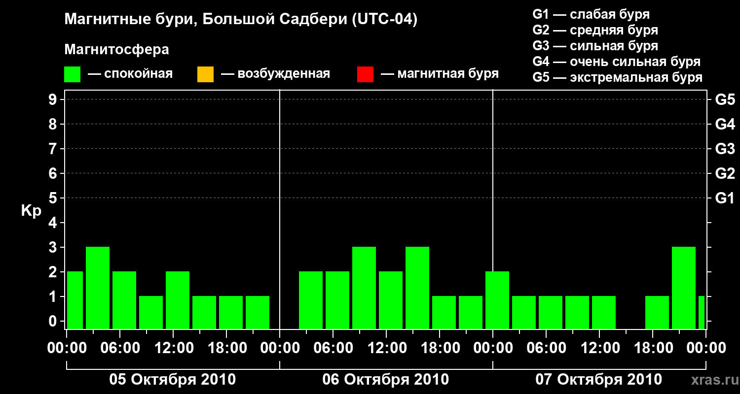 Магнитные бури Большом Садбери 7 октября 2010 года