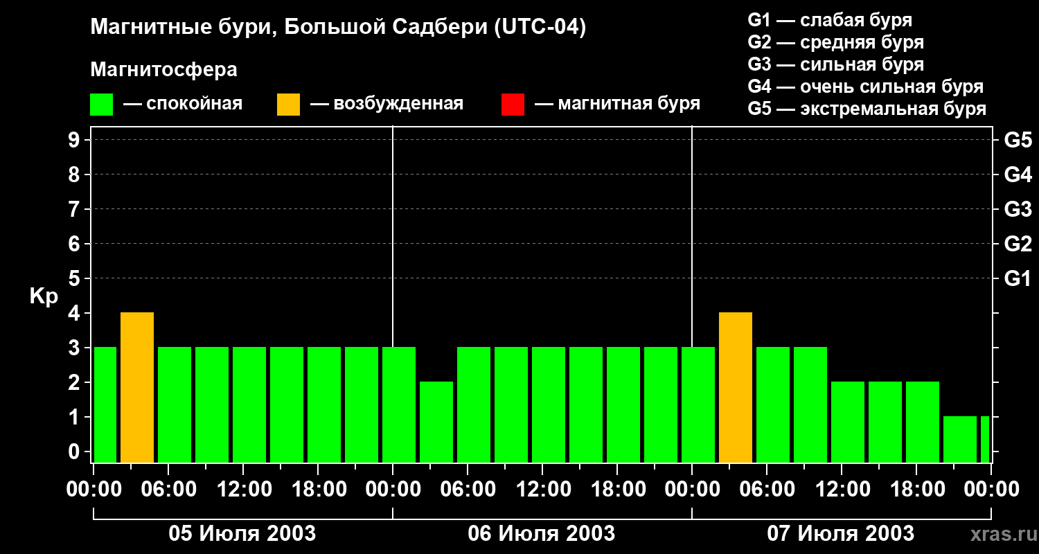 Магнитные бури Большом Садбери 7 июля 2003 года